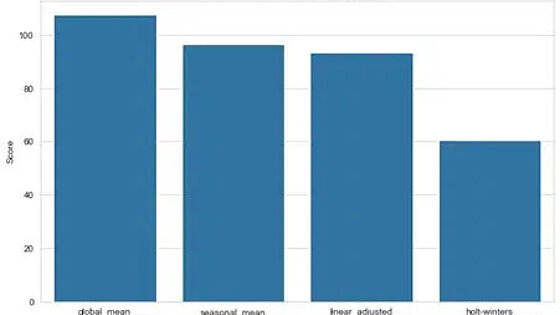 The results of the forecast model for the various imputation methods are shown below. As already indicated in the chart above, the Holt-Winters method and the linearly adjusted imputation provide better forecast results than the mean value method. However, it also shows that the results of the seasonal mean method are comparable to those of the linearly adjusted method. This confirms that several methods should be tried and compared rather than relying solely on the rule of thumb. We also see that both metrics show the same result, which reinforces our conclusion.